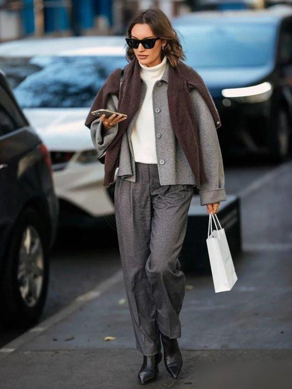 我昨年深秋跟闺蜜去巴黎玩,一下飞机就被街头的穿搭戳中——不是满大街的logo堆成山,也不是把悉数流行色往身上糊,反而东谈主东谈主都像“穿对了我方”:地铁站口买热红酒的密斯姐,穿深灰收腰西装搭浅灰羊绒领巾,下装是直筒黑裤配棕色中跟靴,裤脚刚好盖过靴口,走路时线条随着动,干练里带着点柔和;香榭丽舍正途上的男生,深蓝直筒牛仔裤配黑毛衣,外衣是短款羽绒,肩膀那里掐得刚好,不会像国内好多男生穿的羽绒那样肿成球;致使街角卖可丽饼的大姨,都穿了件称身的卡其色风衣,系着细腰带,头发梳得整皆,连围裙都是干净的浅米色。