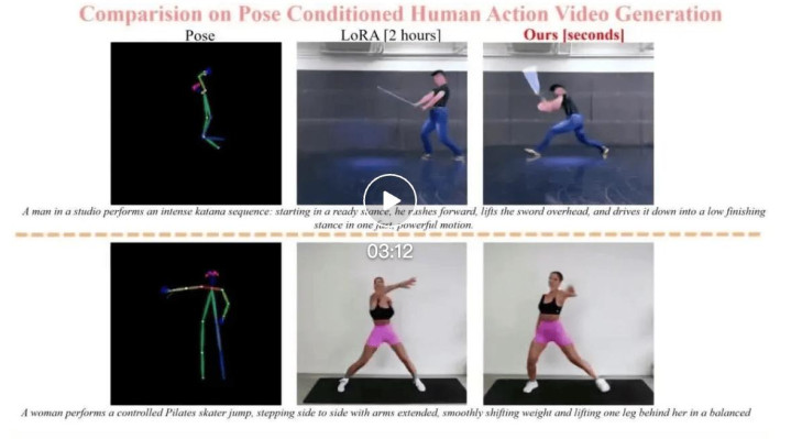 频年来,创意媒体和视觉内容的需求捏续增长,这鼓吹了功能弘大的视觉生成基础模子的发展。这类模子通过大范围图像或视频数据集历练,展现出丰富的才能与通用的先验常识。可是,面对用户的个性化需求 —— 尤其是触及细粒度指示时,模子时时难以生玉成齐适应用户盼愿的末端(如图 1 “WAN” 所示,文本到视频基础模子 WAN 在认知 “别称须眉正在作念功夫侧踢” 这类具体动作指示时发达欠安)。